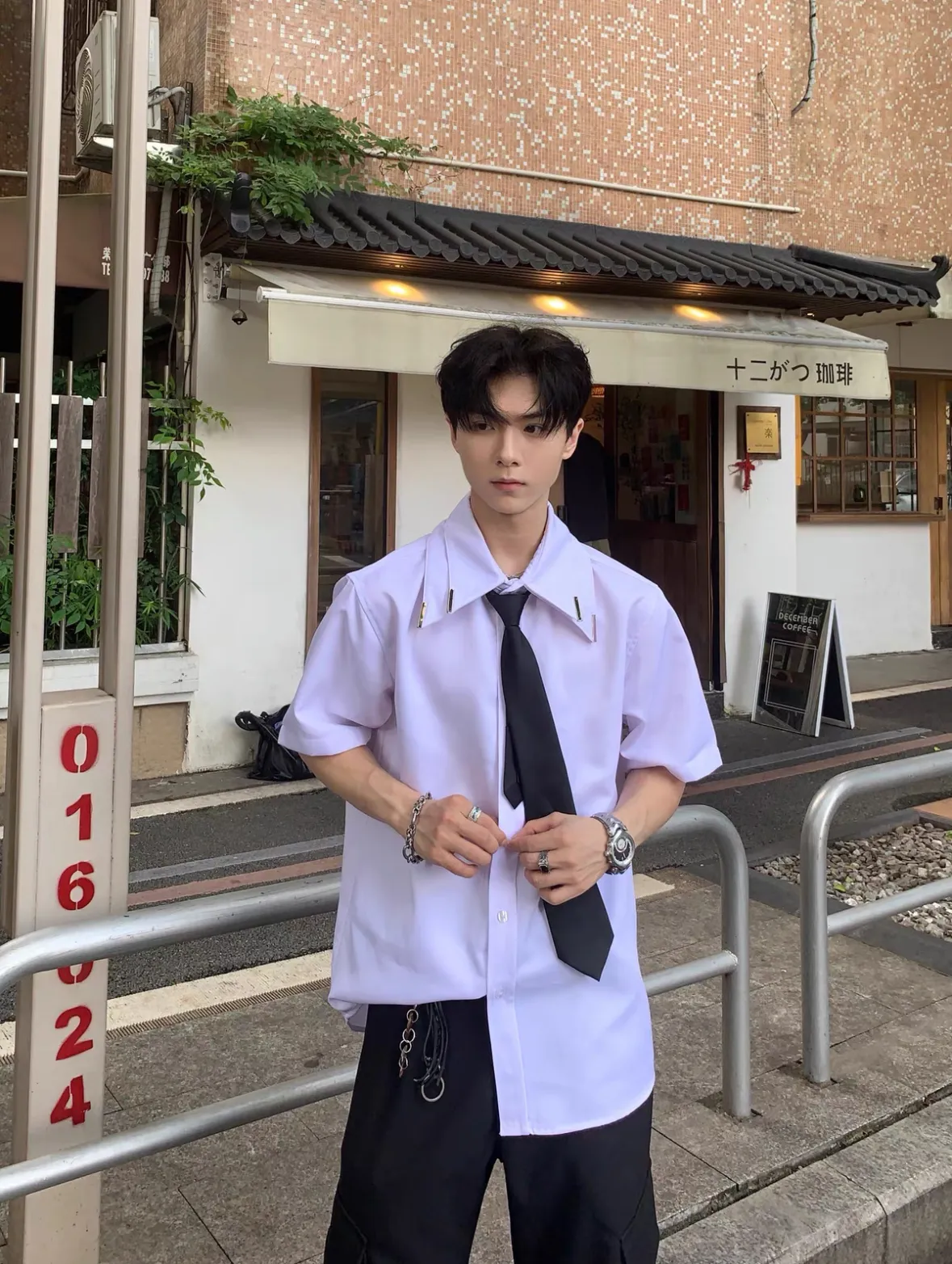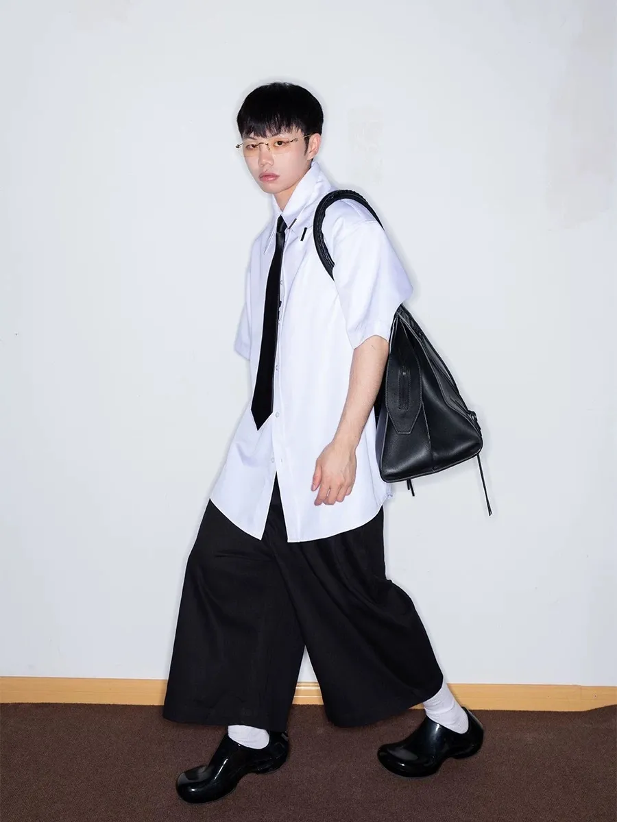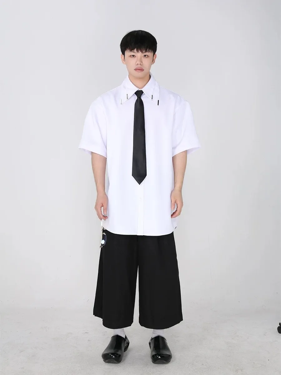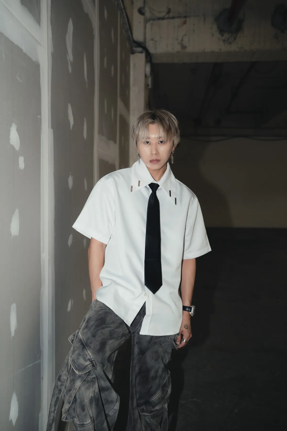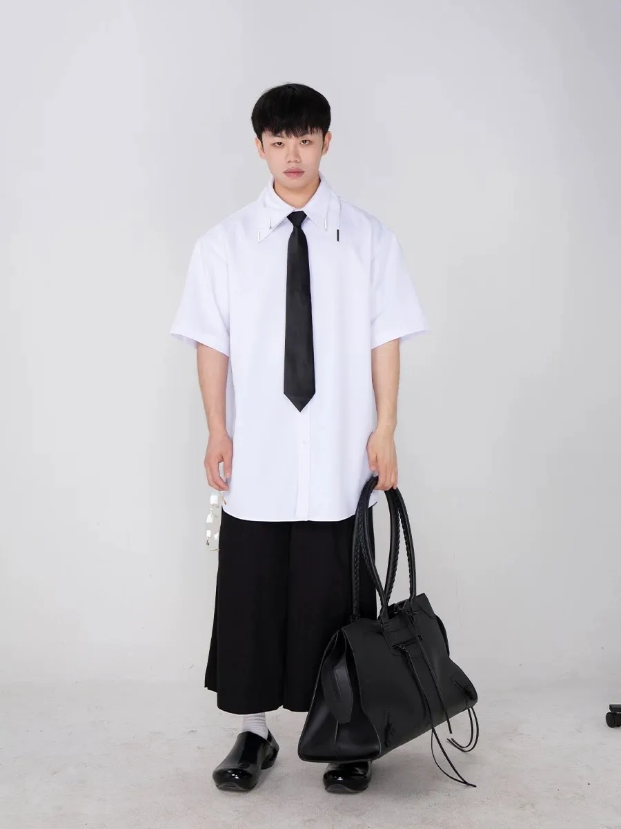 F4F 江草子 學院風 廓形 雙層領 抗皺 短袖襯衫(附贈領帶)
