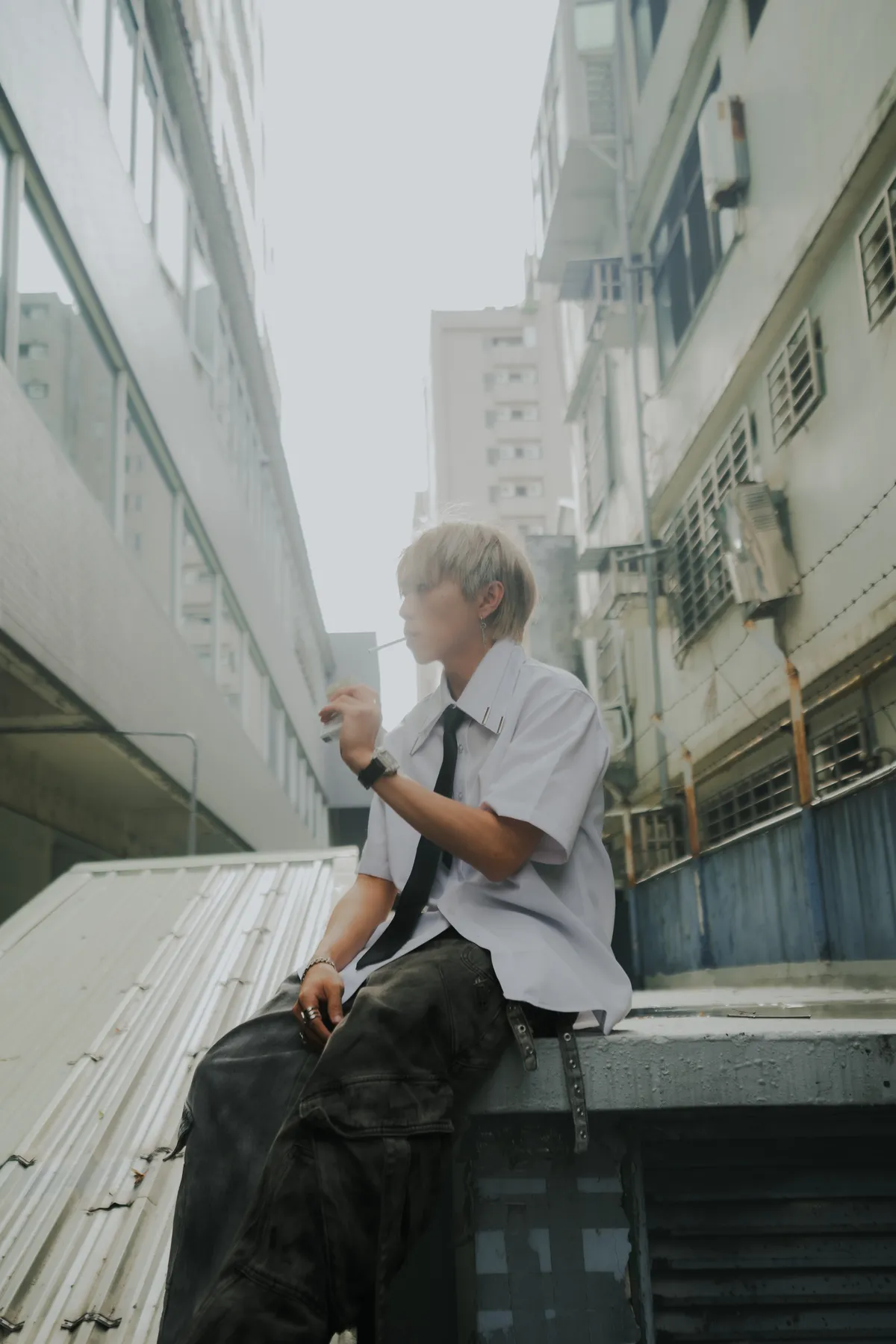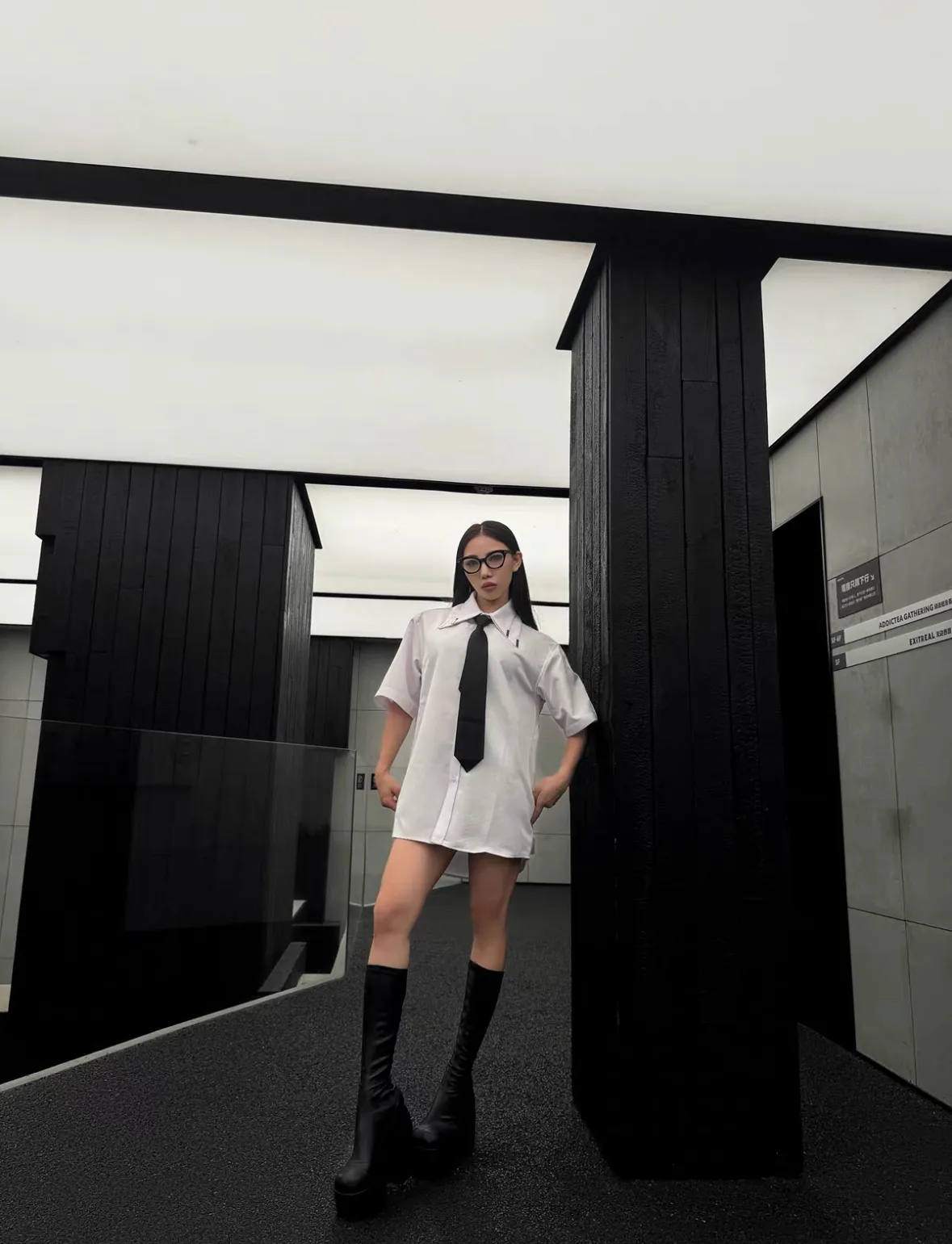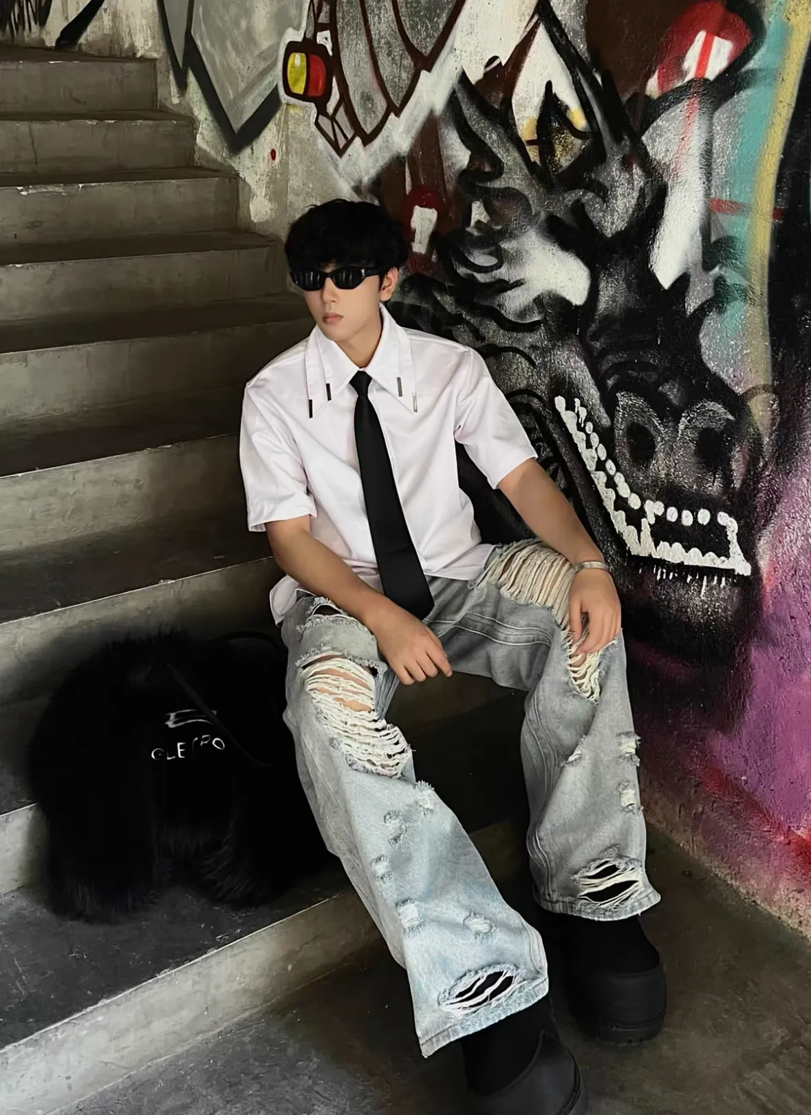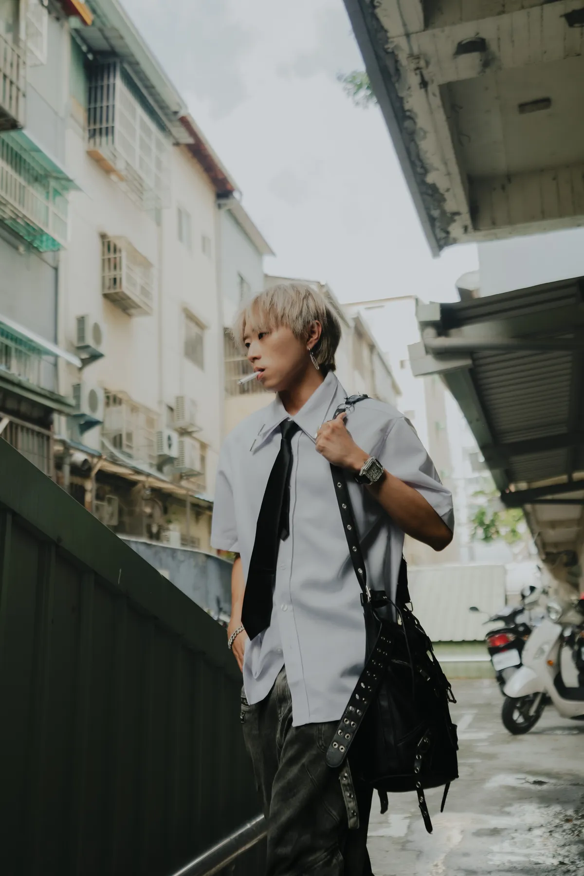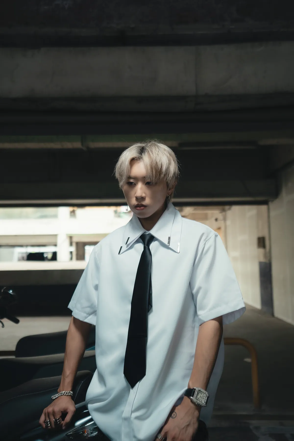 F4F 江草子 學院風 廓形 雙層領 抗皺 短袖襯衫(附贈領帶)