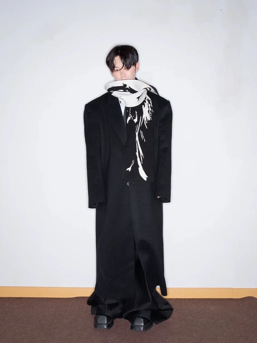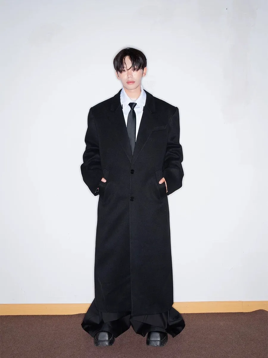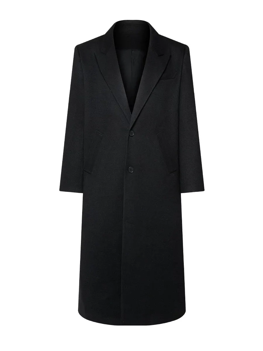 F4F 訂製 簡約寬鬆 毛呢 長版 大衣 外套(黑色)