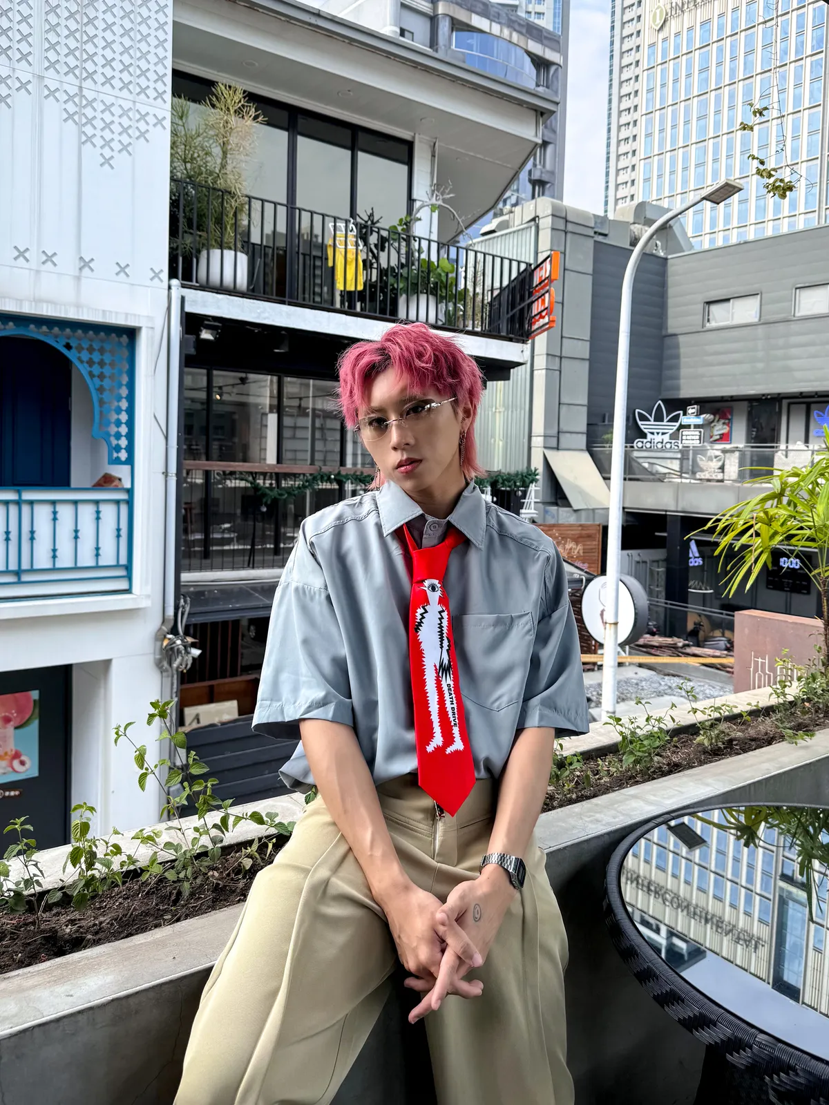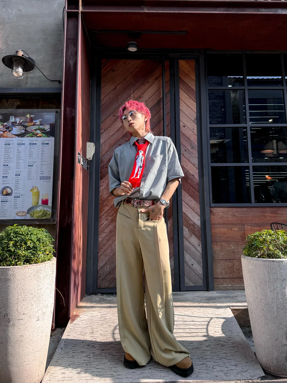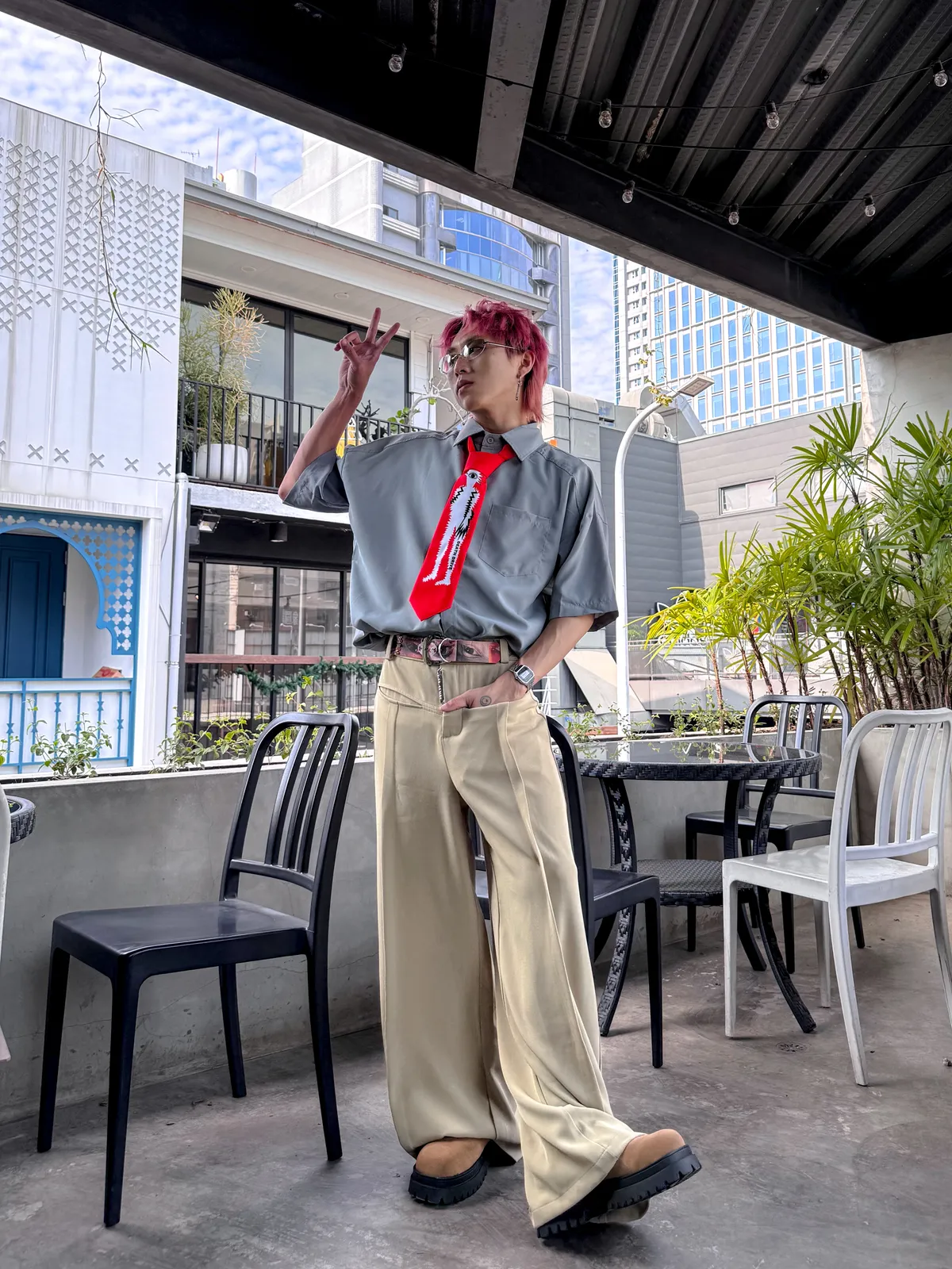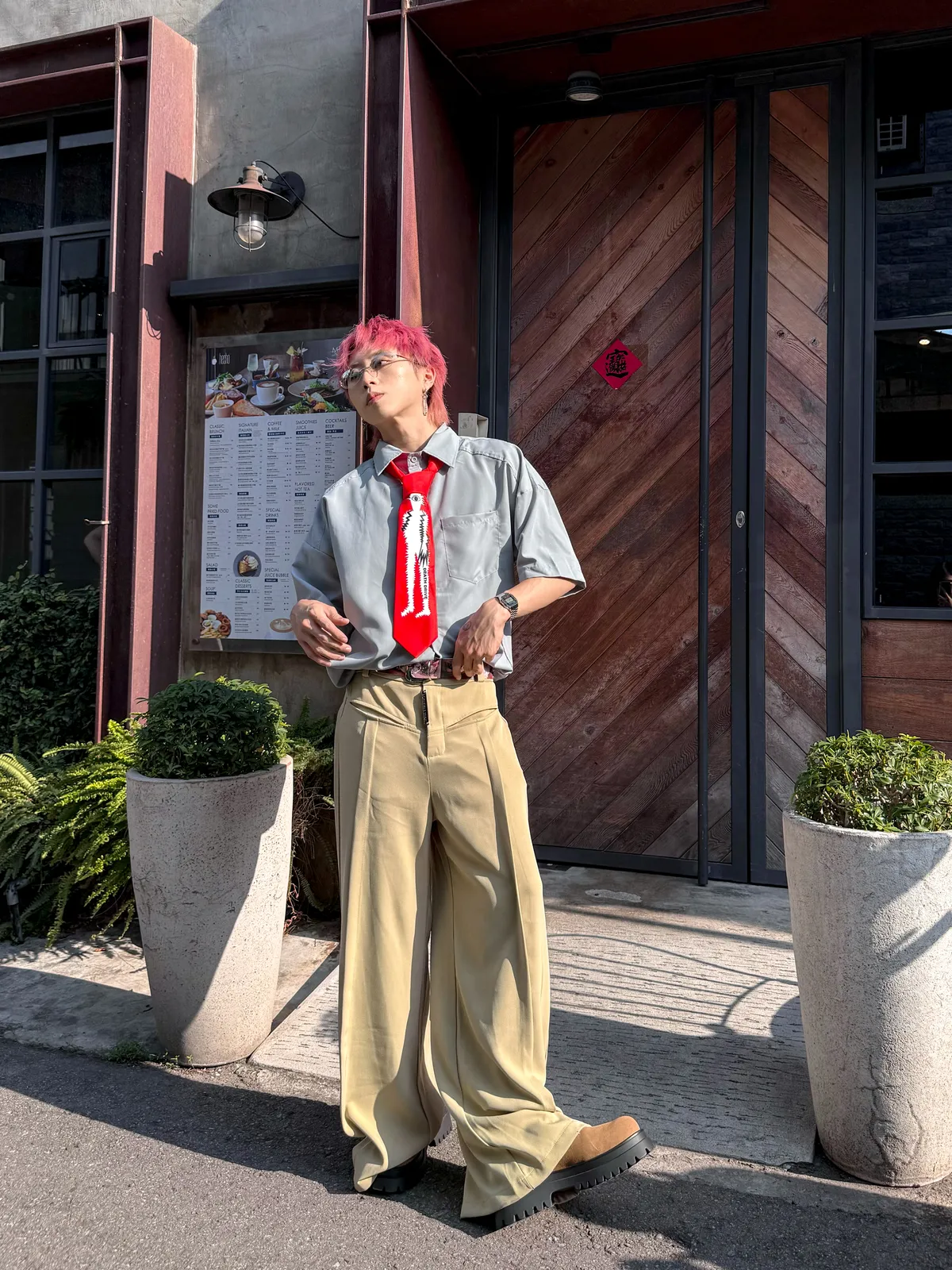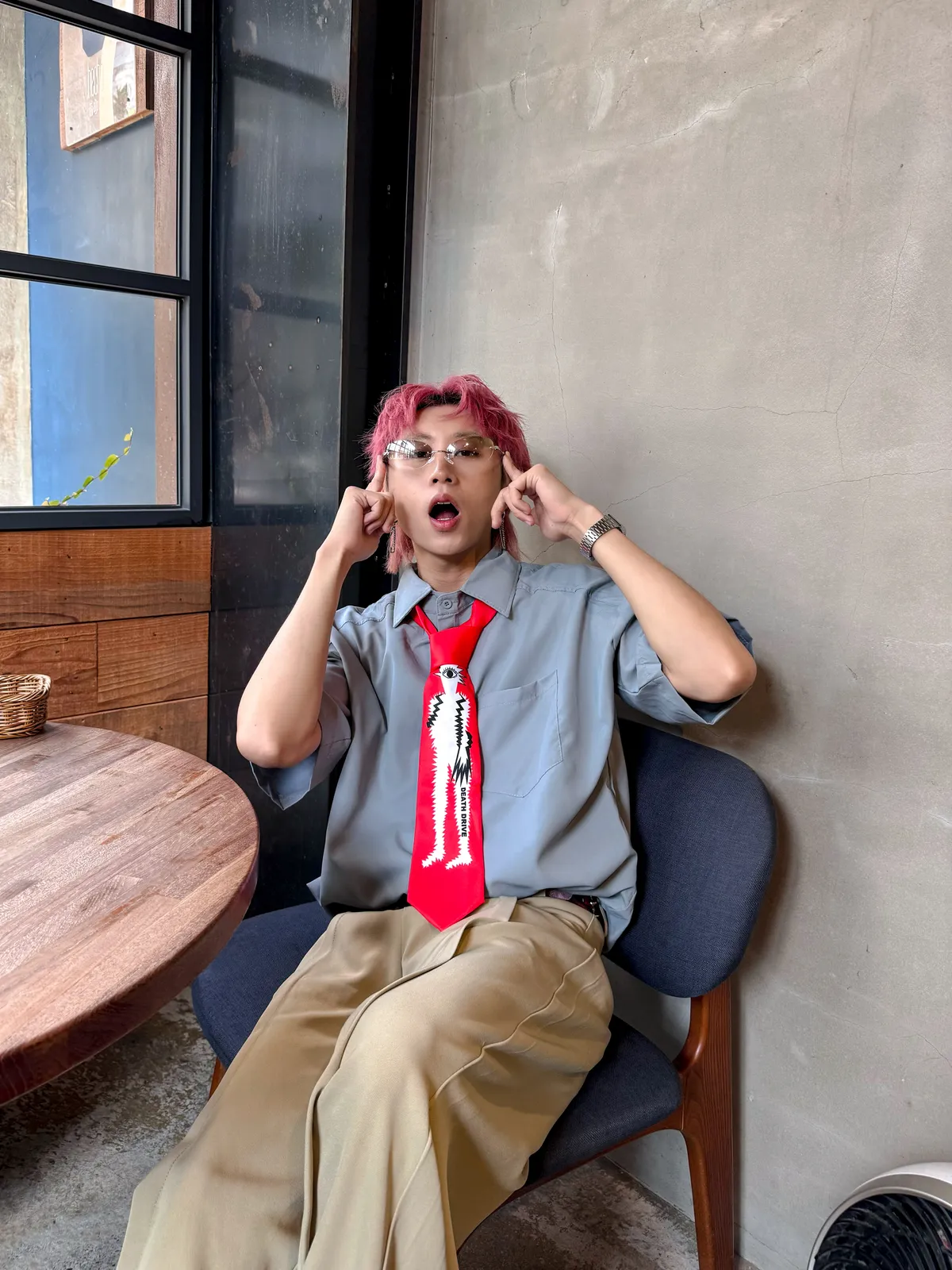 霧霾藍 小尖領 大口袋 平價 短袖 襯衫