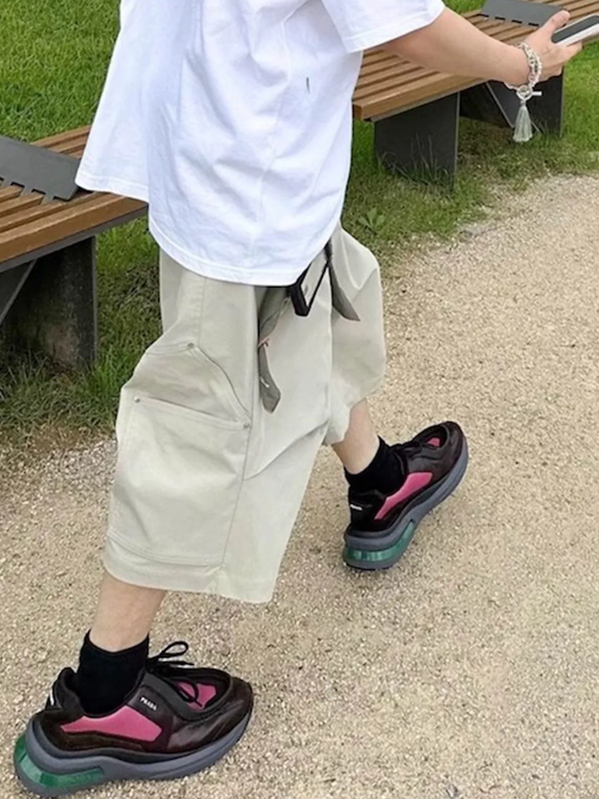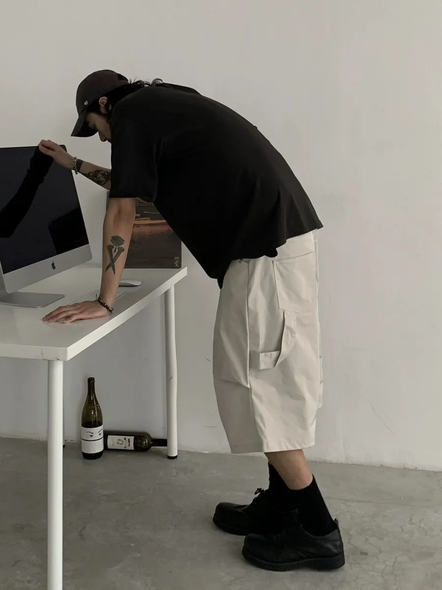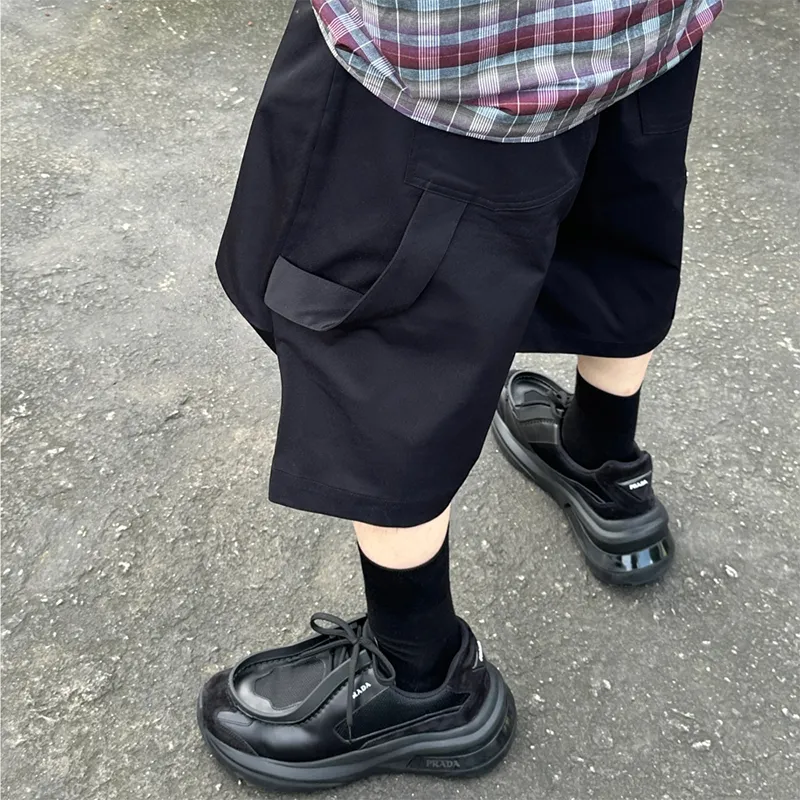 打褶廓形 彎刀 斜紋 過膝 七分褲(黑/杏)