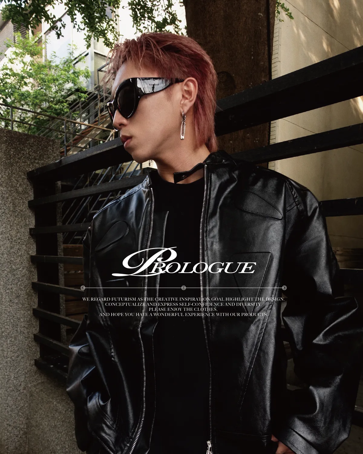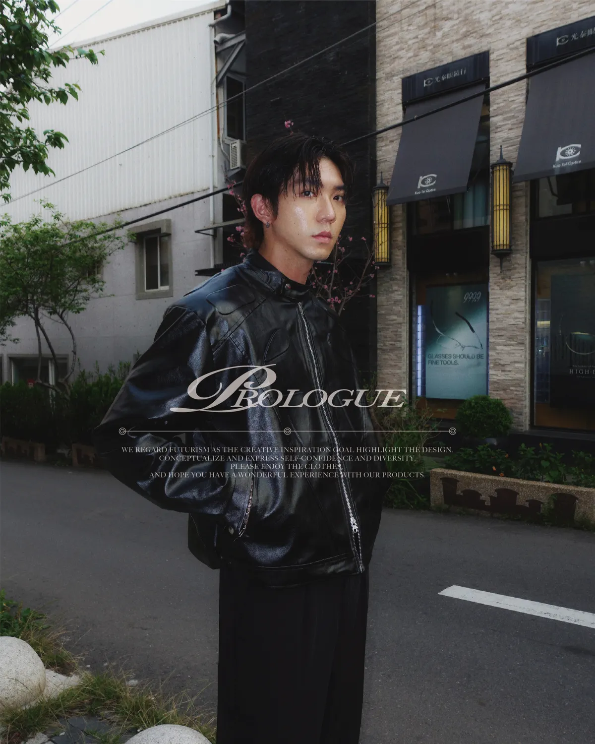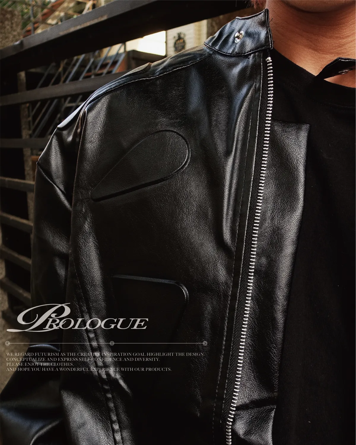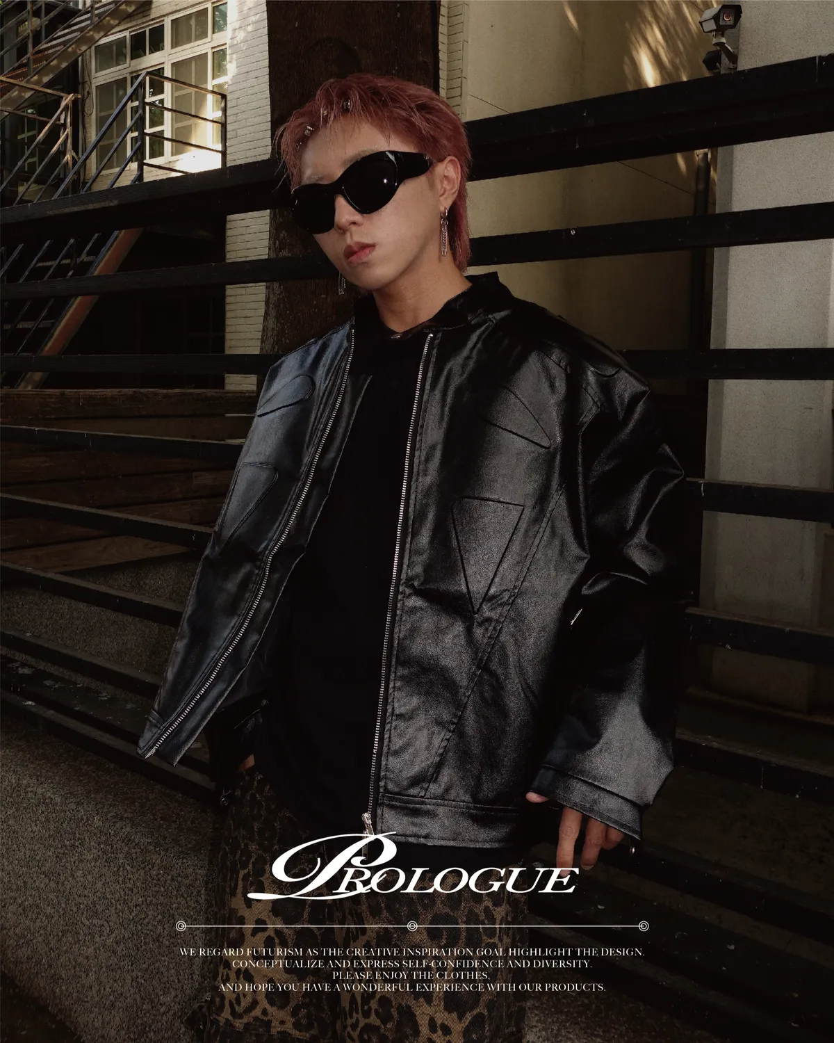 區塊 先鋒感 薄款 雙拉鍊 墊肩 機車外套 皮外套(黑/白)