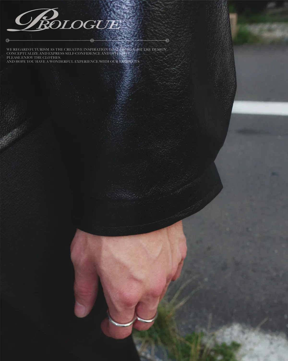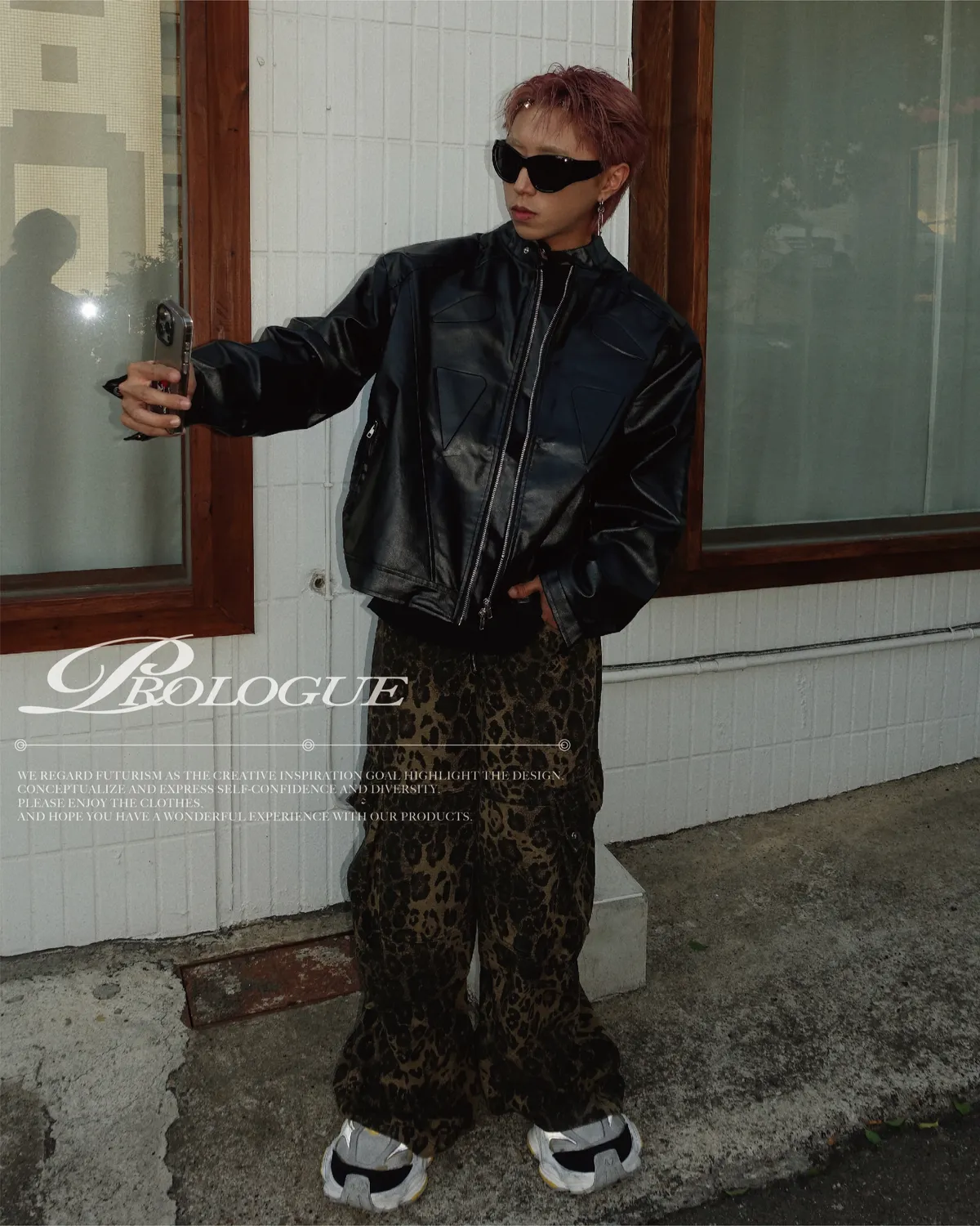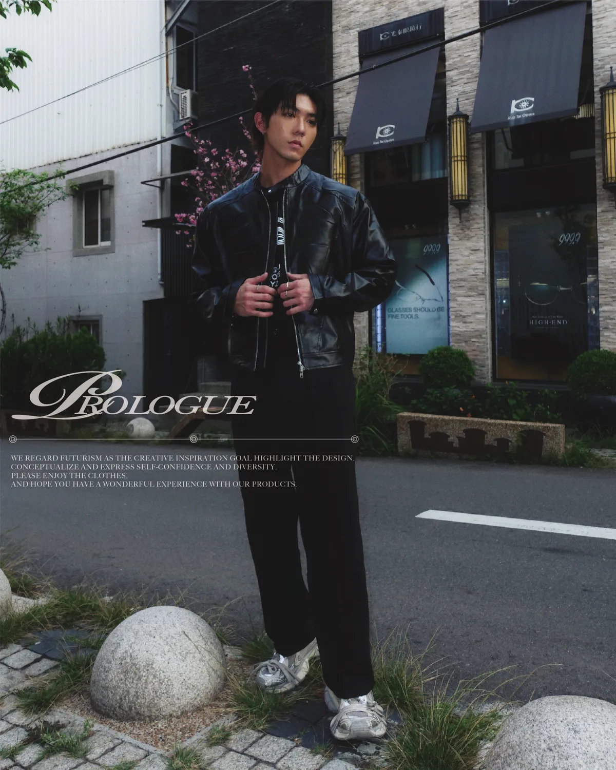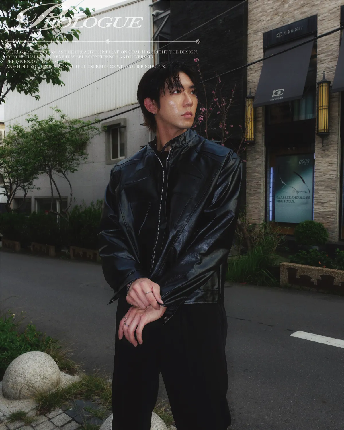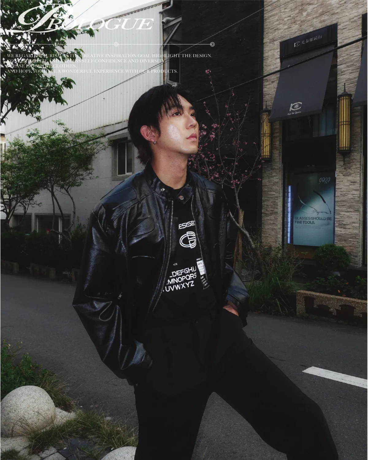 區塊 先鋒感 薄款 雙拉鍊 墊肩 機車外套 皮外套(黑/白)