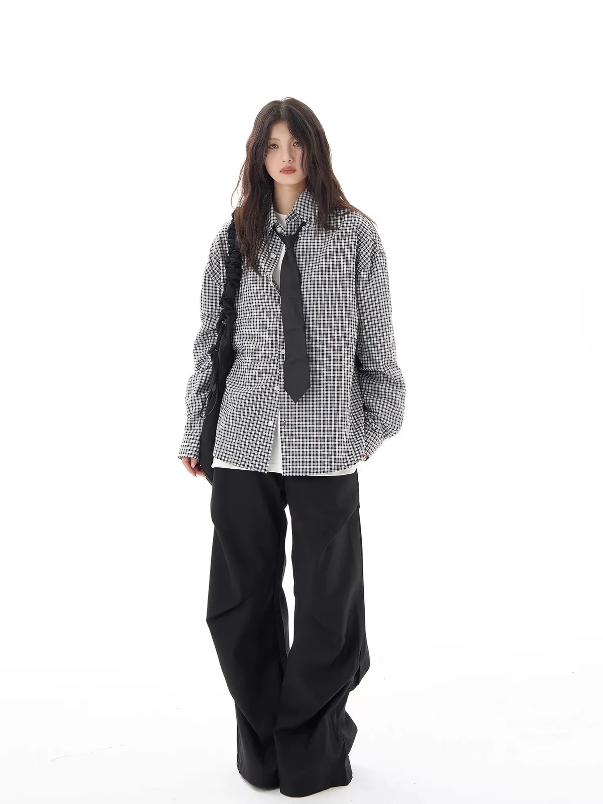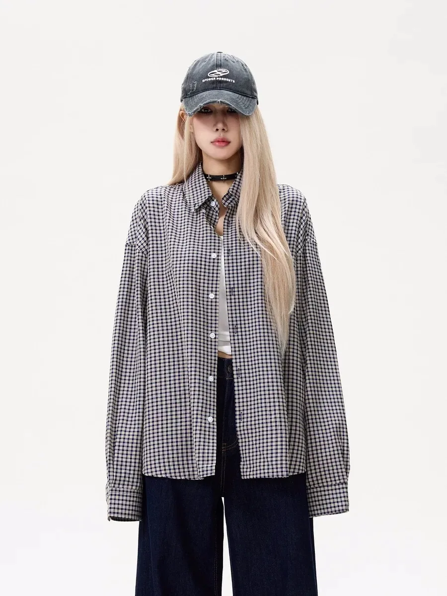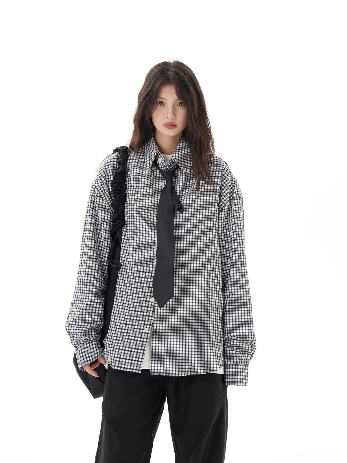 經典格紋 韓系街頭 長袖 襯衫 (黑色)