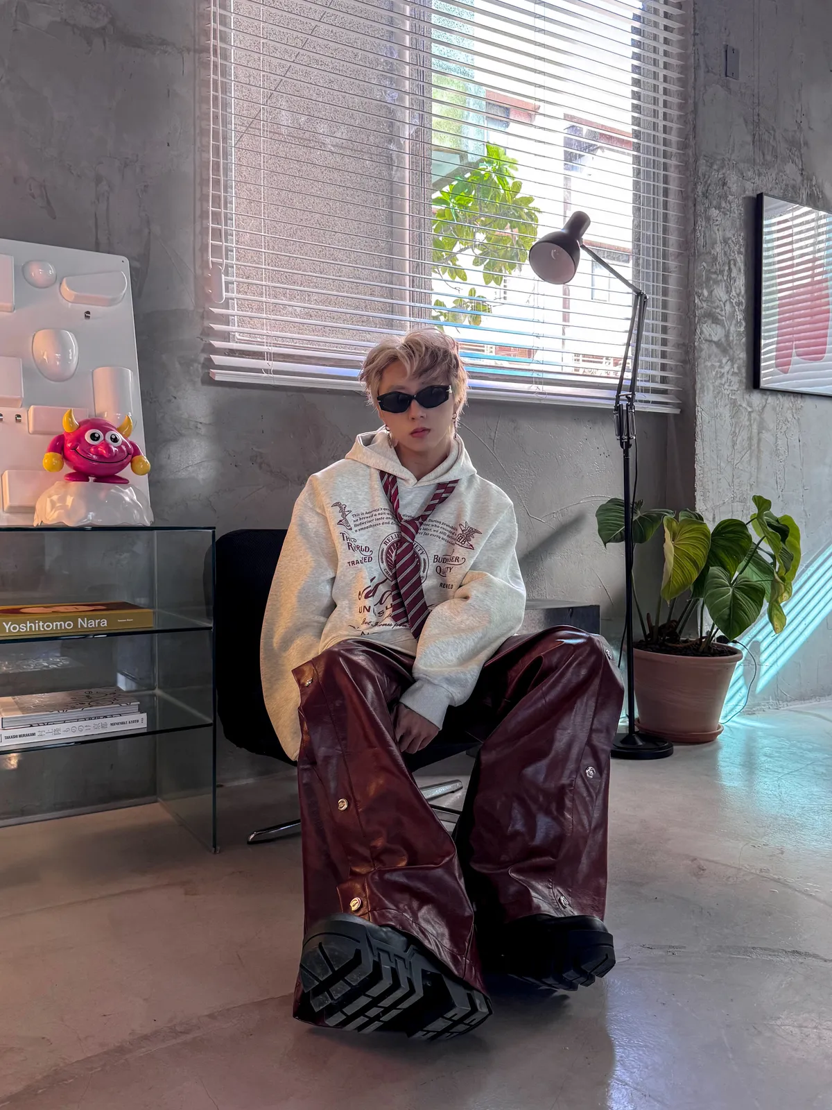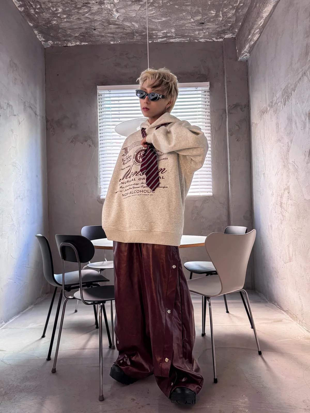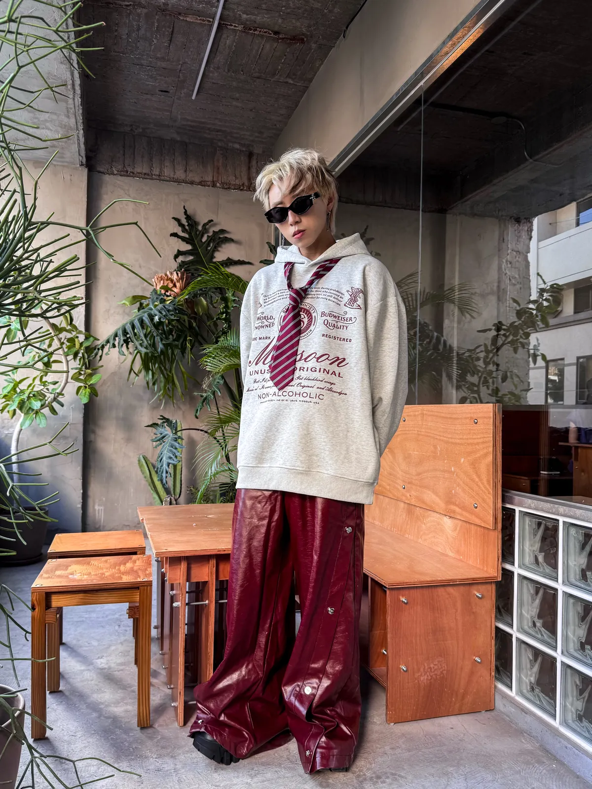 ARGUE 側開金屬扣 打褶 皮褲 長褲(酒紅)