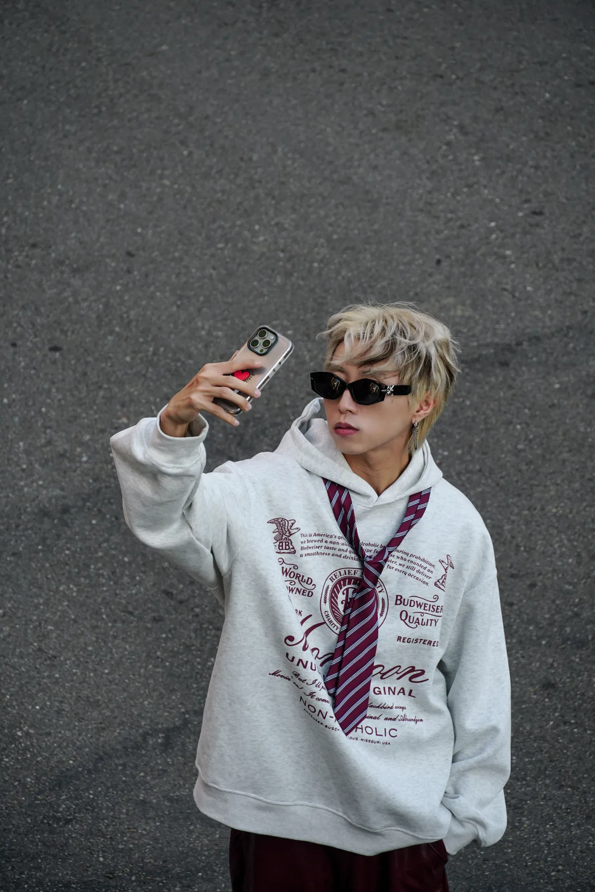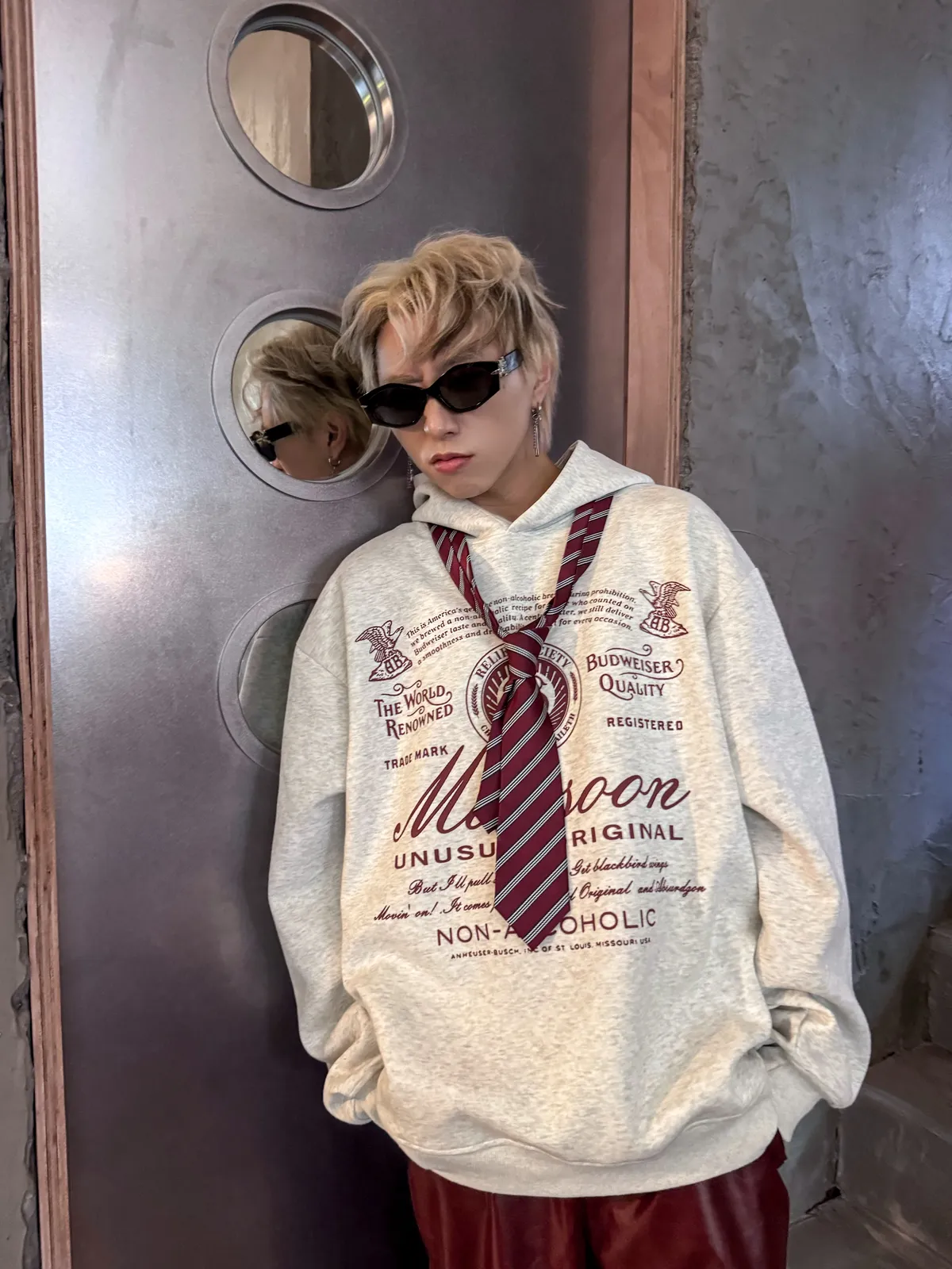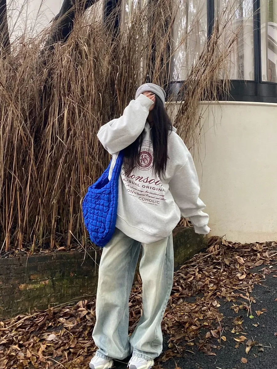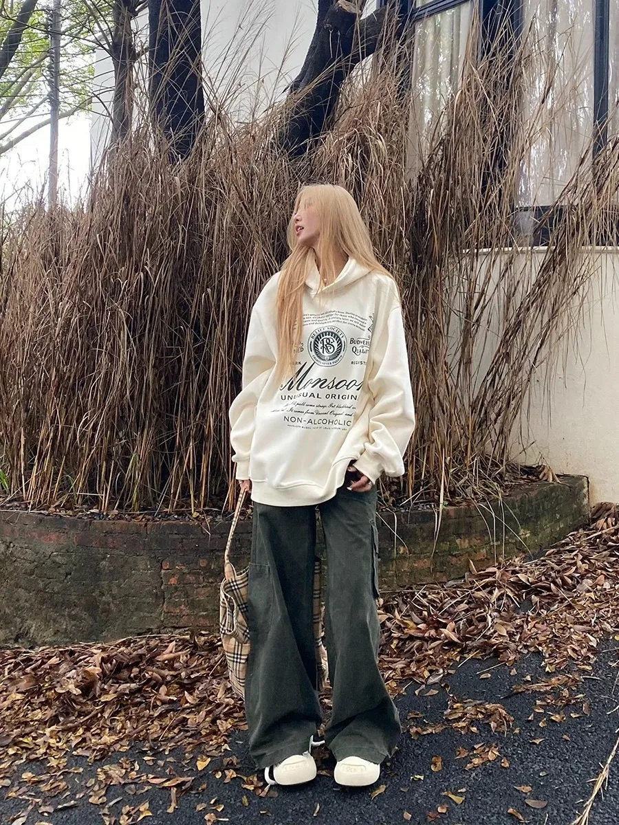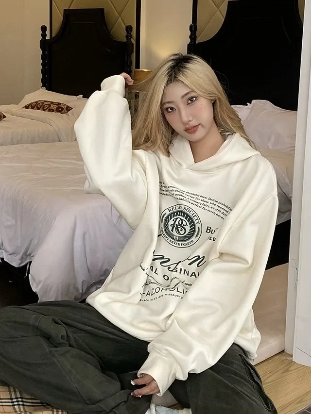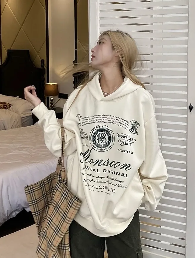 學院風 美式復古 字母印花 帽踢(灰/米杏)